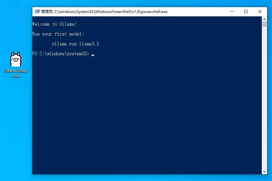 下完点击安装,安装成功会弹出一个命令行界面,Ollama本身是没有可视化界面的,但并不影响后续使用,毕竟它只是一个框架。