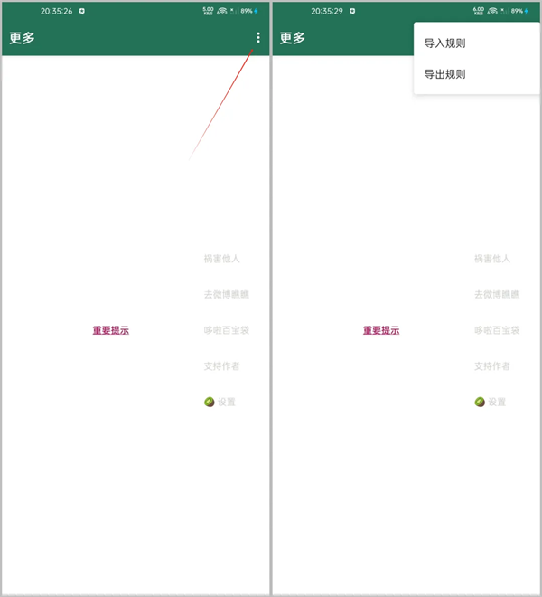 首先我们需要复制规则,然后打开李跳跳-更多-点击右上角的三个小点点,即可看到导入规则的选项。
