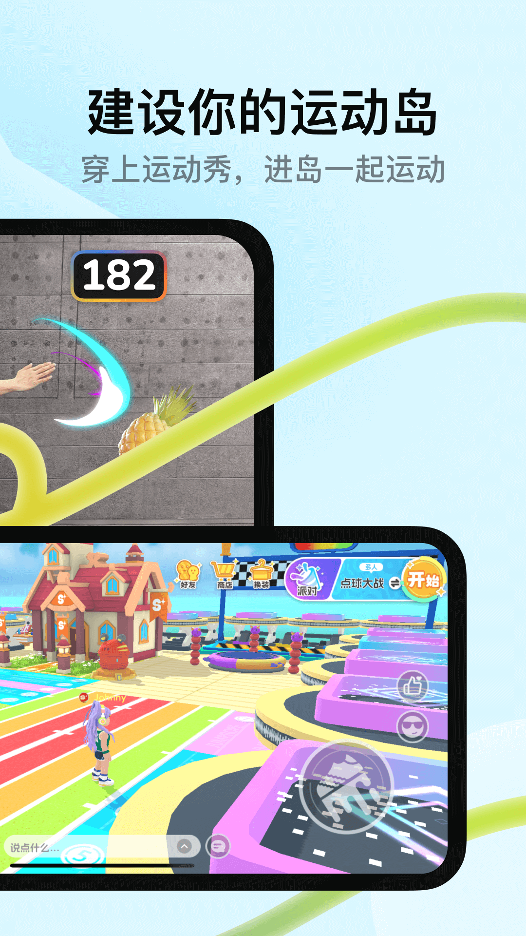 3、推出“运动岛”概念,用户可创建个性化虚拟形象穿上运动装备,进入虚拟岛屿参与各类体育竞技与派对游戏,体验全新的互动式运动乐趣。