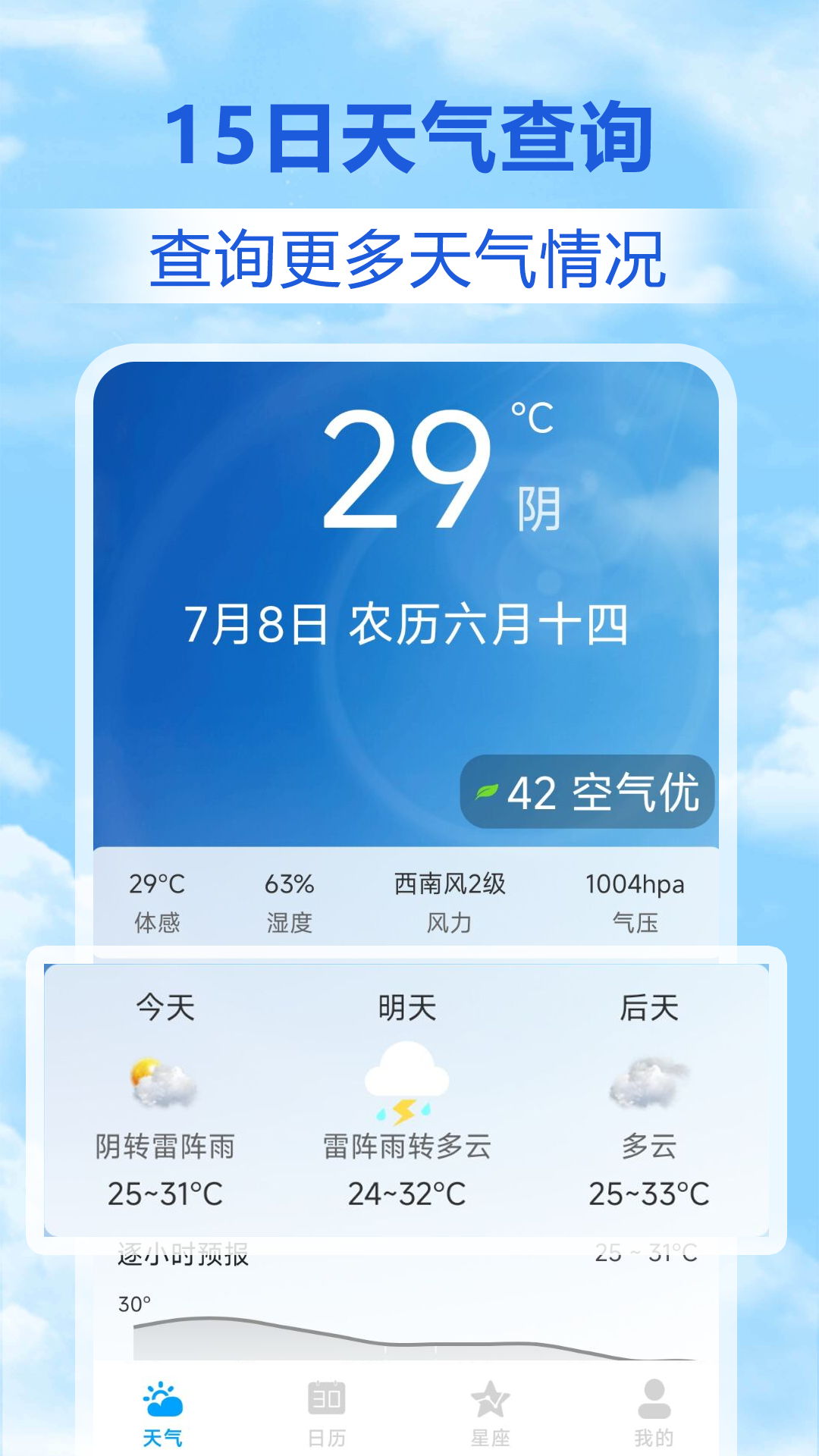 通过动态展现雨天和晴天等天气情况,让您更直观地了解天气状况。