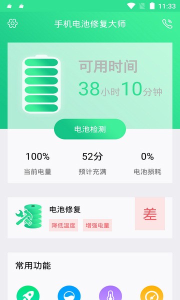 手机电池修复大师软件是专业的手机电池检测优化工具,依托专业检测技术精准分析电池健康状态,通过多维度评分直观呈现电池各项数据。支持针对性的电池优化保养与问题修复,科学改善电池使用状态,有效延长电池使用寿命,提升手机续航体验。