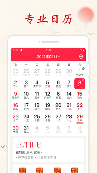 直观日历展示:打开软件呈现清晰的日历界面,以月份为主要视图,日期标注清晰,重要节假日会有特别标识,方便用户快速浏览日期情况。