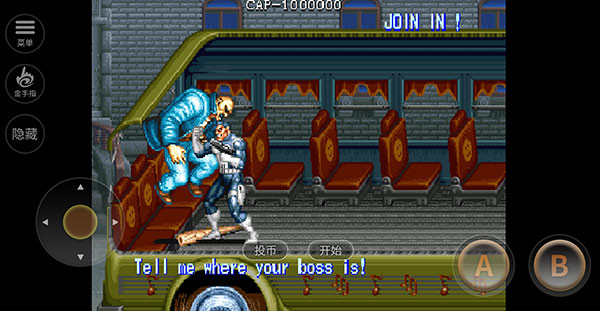 3、设置好后,左下角按钮可以控制角色移动,A键攻击,B键跳跃,知晓后点击“投币”。