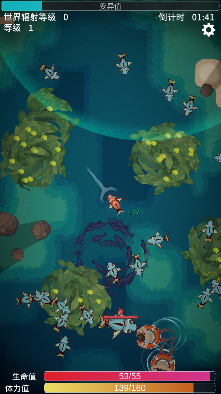 5、吞噬其他鱼可以获得经验,提升等级后就可以变异,你可以选择一项变异能力来强化自己。