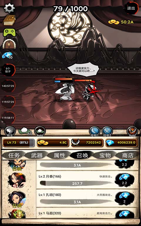 3、游戏设计了完善的离线挂机收益系统,即使你关闭游戏,角色也会自动积累资源,非常适合时间碎片化的玩家。