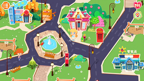 1、打开游戏,进入美丽的小镇。看,糖糖正准备出门呢,先给她来个时尚大变身。点击左边的“衣服”气泡,即可为她换上精美的套装。哇,美美哒!轻轻拖动糖糖开始在街道上漫步吧!恩,迷路了?打开右上角的“地图”就能定位哦。咦,这位居民需要帮助,点击他头上的气泡一探究竟。不好,原来是着火了,还有只小猫被困在了树上。小伙伴,快给消防员糖糖搭把手,拖动右边的水管,对准火团。耶!大火熄灭了!