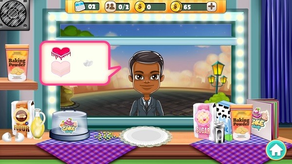 2、横版卡通风设计的边游戏边学习的烘焙技术的模拟娱乐小游戏。