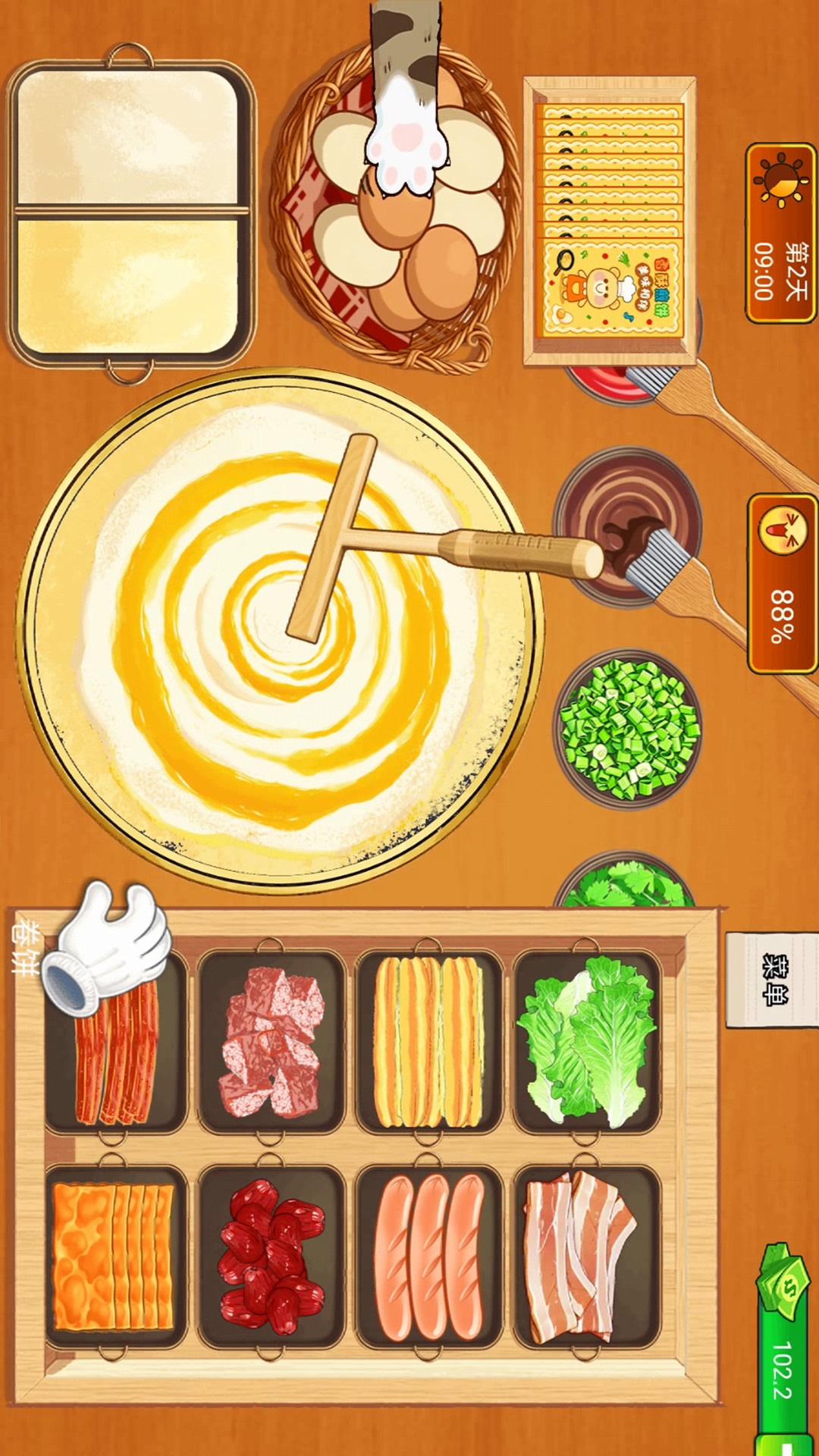 3、遇到随机事件如食材损耗时,快速切换备用食材或临时调整可制作的菜品,减少对整体经营节奏的影响。
