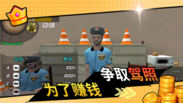 1、进入游戏后,玩家首先需要乘坐出租车前往考取驾驶执照,为后续行动做好准备。
