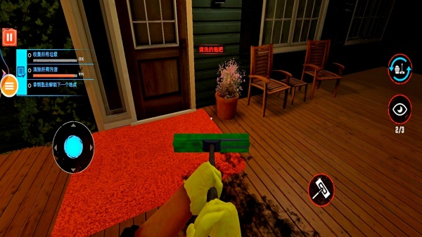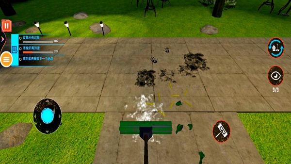 3、进入场景后,先收集别墅周围的垃圾,对室外区域进行初步清理。