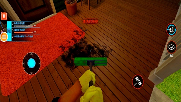 5、点击右上角工具栏,选择拖把等清洁工具,对地面和污垢进行彻底清扫。