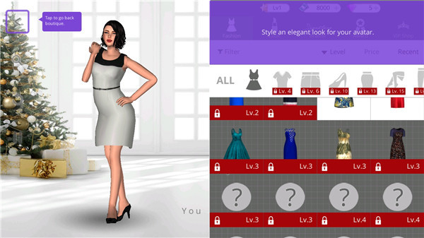 3、当你的精品增长,你会学习更多和解锁的项目更多的装备类别 - 鞋,高跟鞋,皮包,钱包,连裤,连身服,彩妆,化妆品,配饰等。