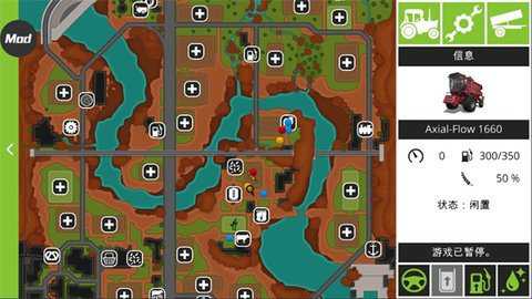 4.资源查看:屏幕上方显示车辆剩余油量、农作物装载量,装载满后需及时转移至拖车/仓库,避免无法继续作业。