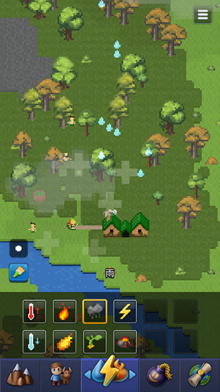 4、自然及灾害:玩家可操控的自然方面有播撒森林、沼泽、冰原等地貌的能力,创造不同的地貌,播撒丰富的资源矿物也会让生物的发展提供有利条件。灾害的可玩性也很高,操控大自然的力量对环境造成影响,除开常见的温度变化,还有影响剧烈的地震、闪电、飓风、火灾等大型灾害,它们都会对地貌造成毁灭性影响,对于生物文明自然是一场巨大的天灾。