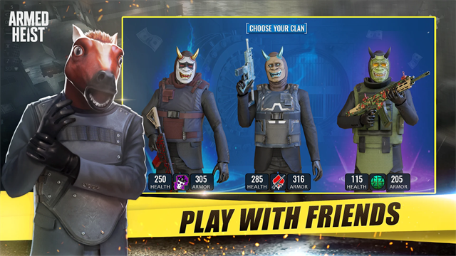 6、支持角色自由装扮,可搭配主武器、副武器、防弹服与面具,打造个性化形象。