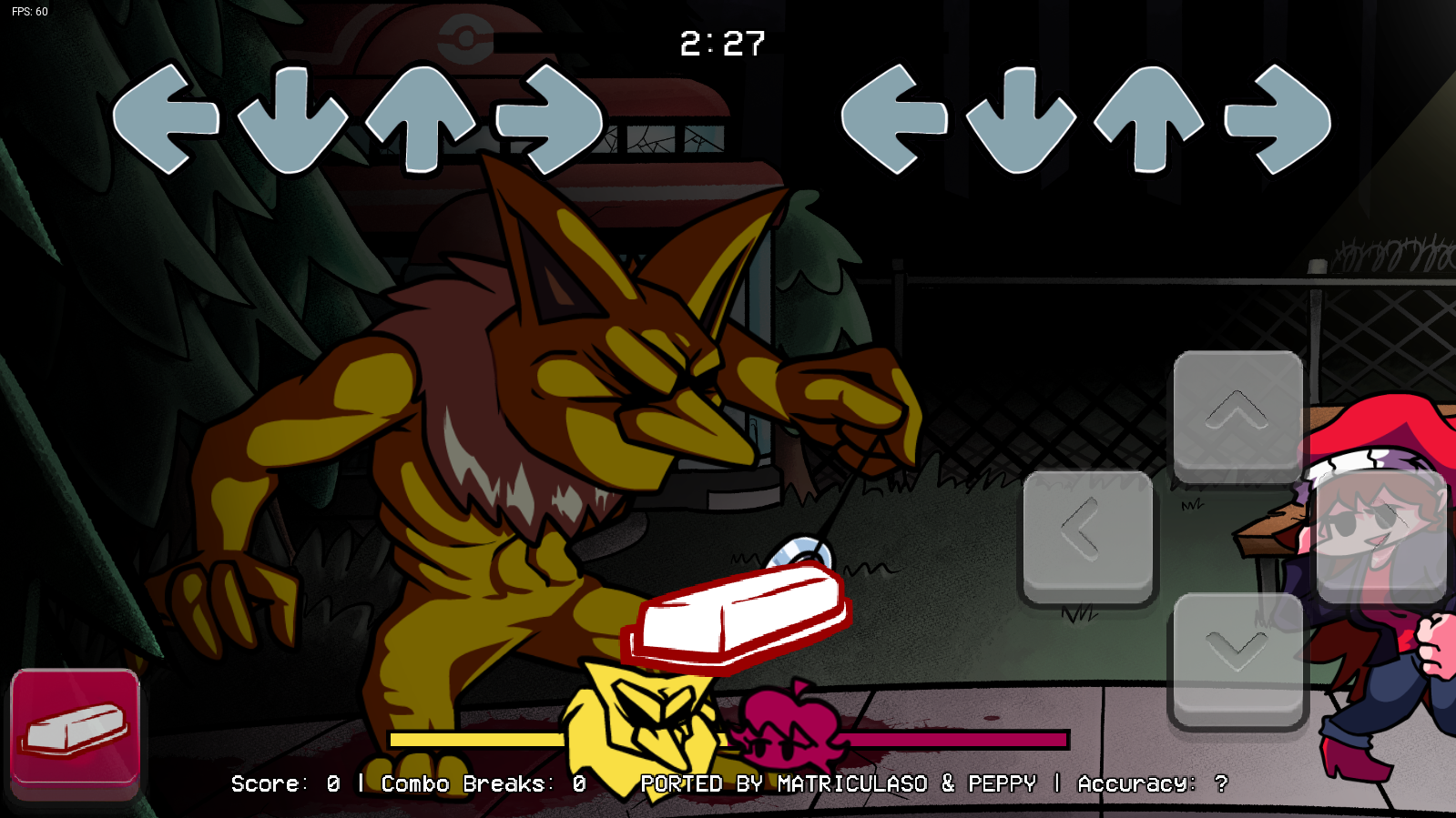 玩家1(通常为主角BF):使用**上(↑)、下(↓)、左(←)、右(→)**方向键控制,其中左/右方向键对应不同节奏的打击操作;
