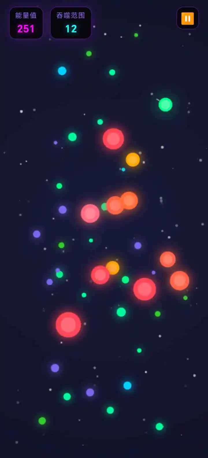 极简操作,深邃内涵: 游戏的操作极其简单,通常只需通过滑动屏幕来控制球体的移动方向。然而,这种简单的操作背后,却蕴含着丰富的策略思考。你需要预判球体吸收的范围,规划最优路径,应对各种复杂的障碍和颜色互动,如同在有限的“空间”中展开一场精密的“吞噬”计划。
