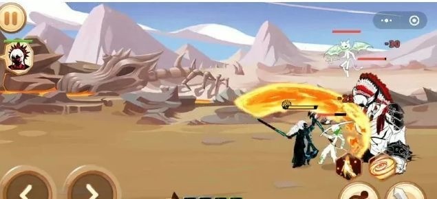 玩家通过虚拟按键控制火柴人移动方向(如前后左右)、攻击动作(普通攻击、技能释放)