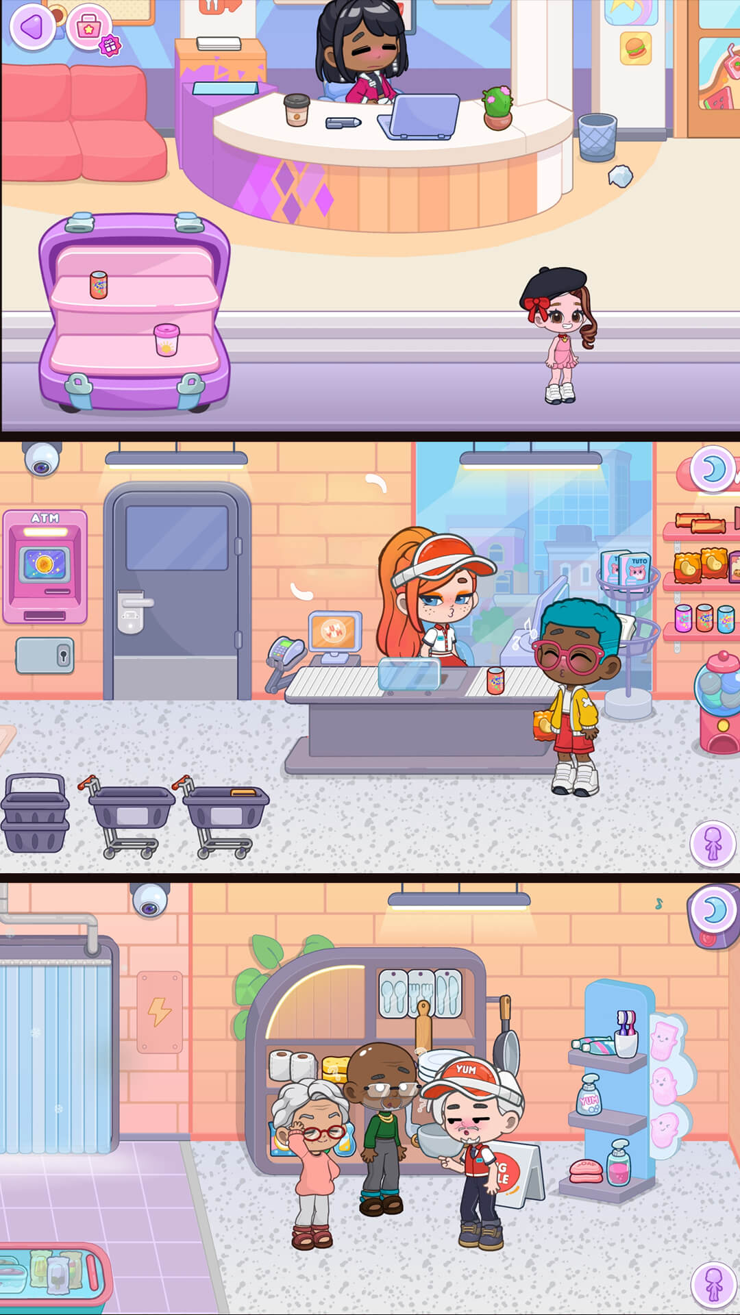 1、首先创建自己的图像。然后他建立了理想的家,然后通过与城市角色和运营场景的互动来促进自己的戏剧和生活节奏。