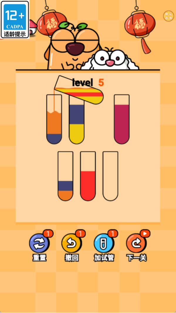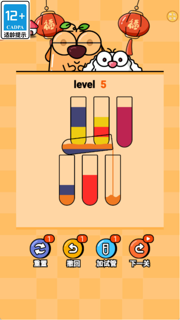 3、每一关都需运用逻辑推理与空间想象、在有限步数内完成液体分类,体验解谜闯关的乐趣。