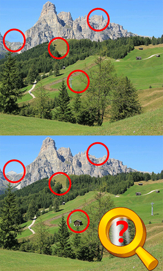 快速切换查看两幅图片,利用短暂记忆对比差异(适合动态差异,如物品移动位置)。