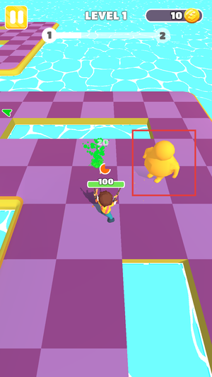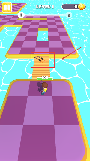 1、在果冻人来袭之前,滑动屏幕移动角色,将地面上的武器拾起。