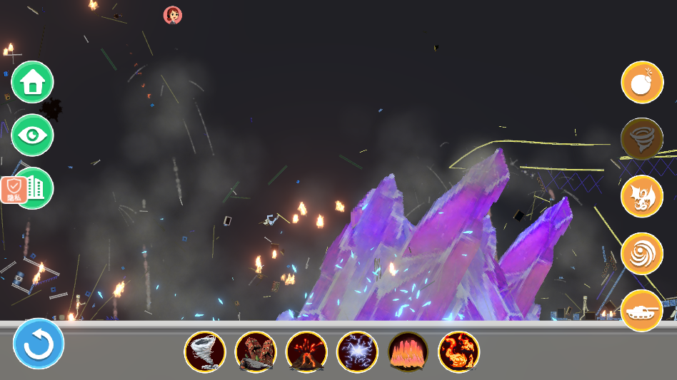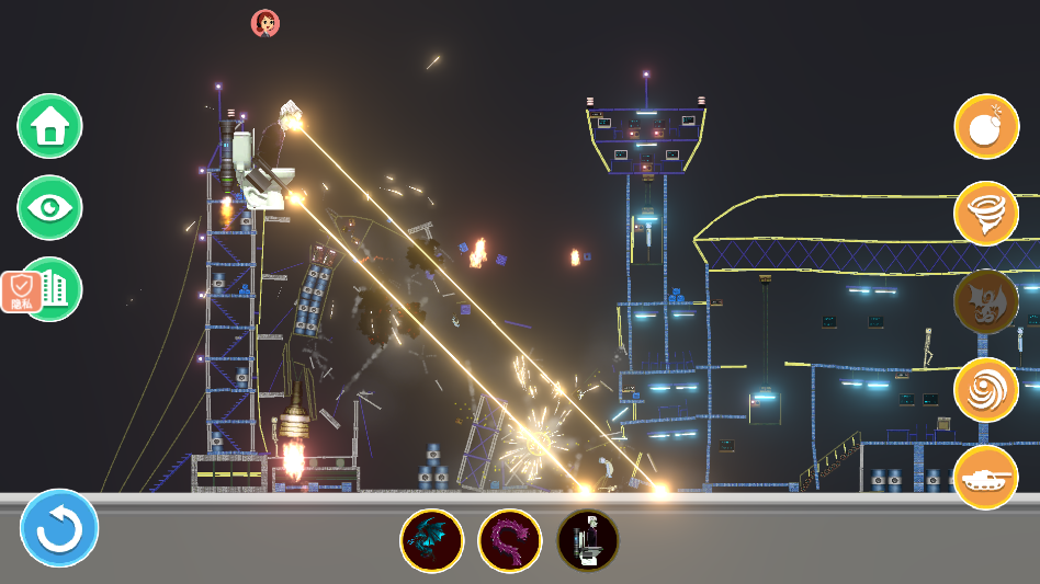 4、进入场景后,右侧可选择不同的破坏武器,对画面中的建筑物进行摧毁操作。