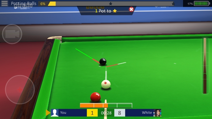 1、拖动球杆调整击球角度和力度,击球前可以预览球杆落点和碰撞效果,为下一步的击球做出最佳决策。