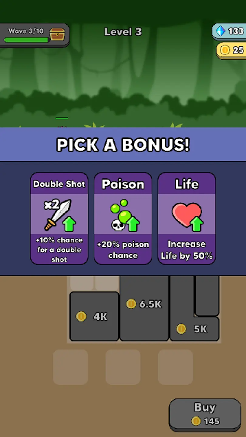 1、每隔两关,玩家便会迎来一次技能选择的机会。这些技能种类繁多,包括连射、弹射、分裂、吸血、“+ 攻击” 等。