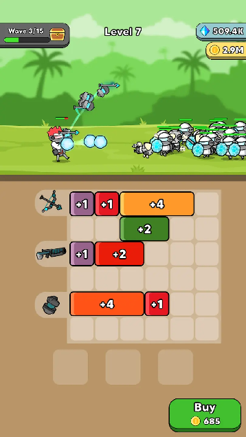 4、“+ 攻击” 技能直接提升攻击力,让玩家的每一次攻击都更具威力。玩家需要根据实际战斗情况,权衡各种技能的利弊,