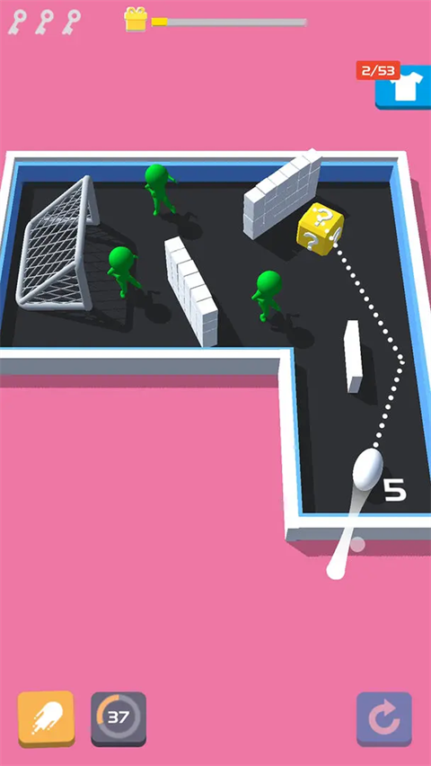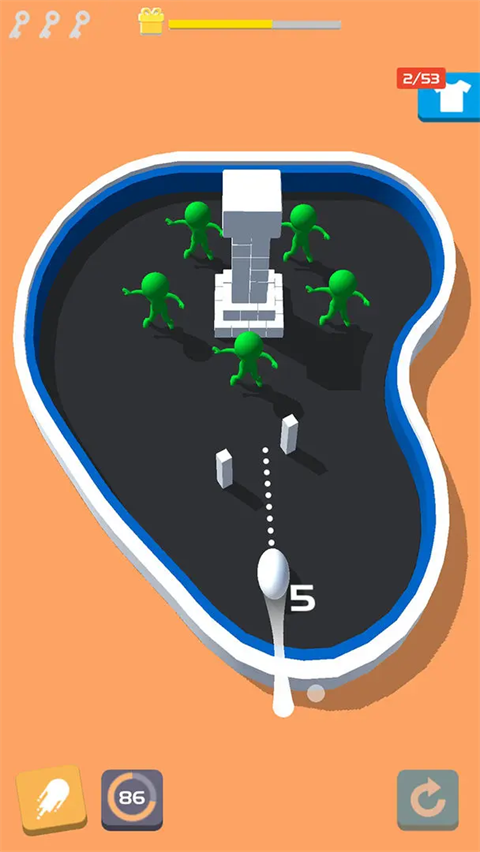 蓄力发射:向后拉动小球并松手,根据蓄力时长控制发射力度。力度越大,小球飞行距离越远,破坏力越强。