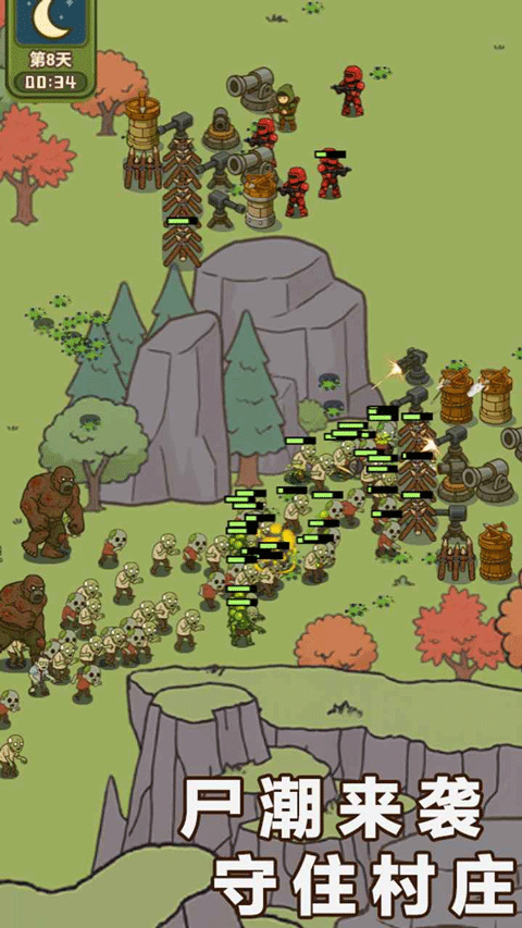 居民驻守:玩家需将攻击力较高的居民分配至防御设施,以执行驻守任务。在僵尸来袭时,居民将自动攻击僵尸,保护村庄安全。