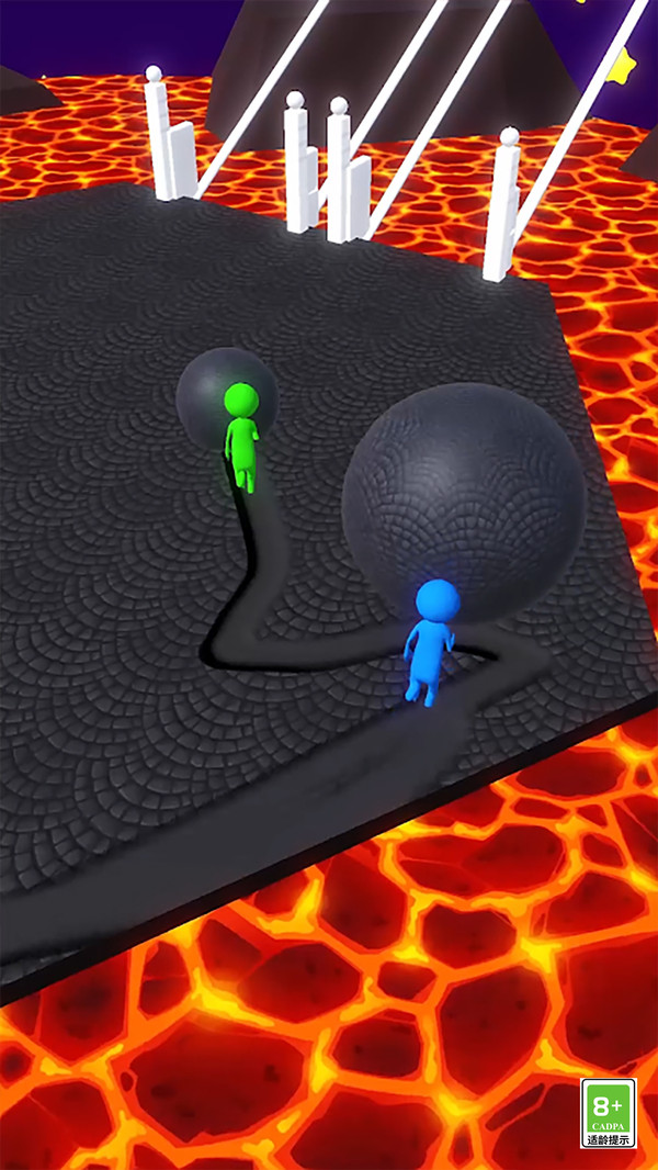 干扰与防御:靠近对手时可撞击使其掉落砖块,或使用道具(如磁铁吸砖、护盾防干扰)保护自身砖块,提升竞速优势。